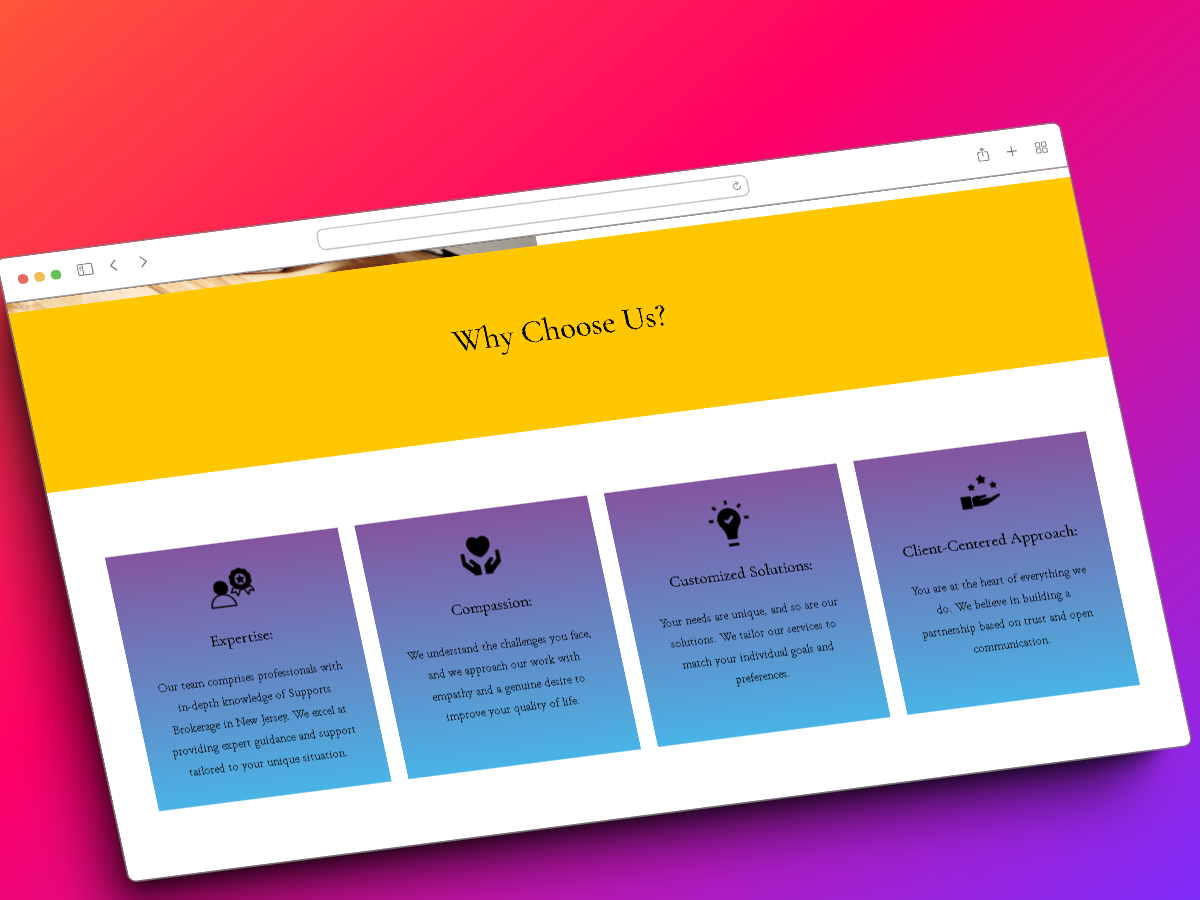 I had the privilege of developing the Caring Connection NJ, LLC website on the Squarespace CMS, providing a user-friendly and informative online platform for individuals and families in New Jersey seeking Supports Brokerage services. Caring Connection NJ is dedicated to offering unparalleled support, and the website serves as a gateway to their mission of guiding clients toward a brighter future through specialized care and assistance.