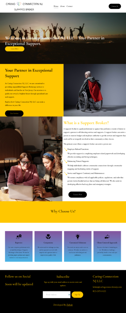 I had the privilege of developing the Caring Connection NJ, LLC website on the Squarespace CMS, providing a user-friendly and informative online platform for individuals and families in New Jersey seeking Supports Brokerage services. Caring Connection NJ is dedicated to offering unparalleled support, and the website serves as a gateway to their mission of guiding clients toward a brighter future through specialized care and assistance.